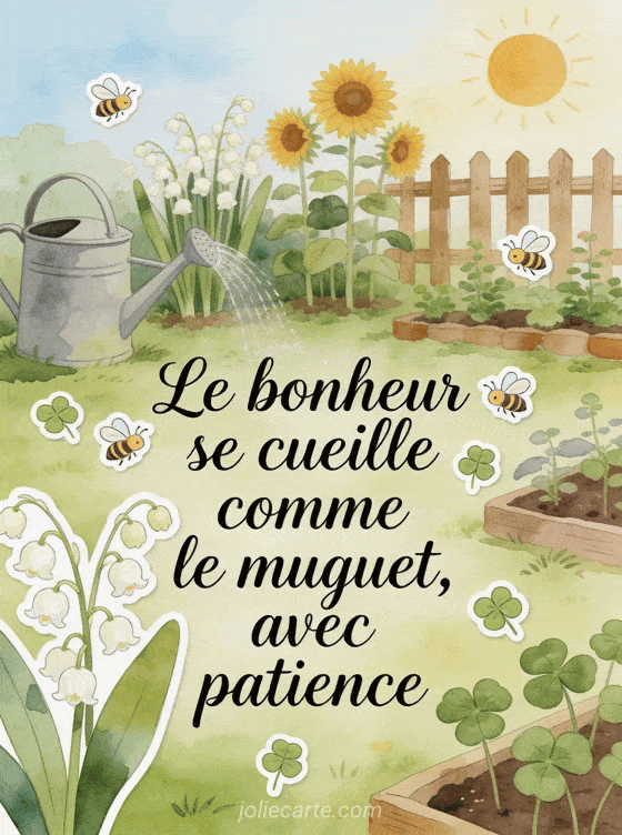 Cueillez le bonheur avec patience grĂące Ă cette carte du 1er mai au muguet porte-bonheur. Parcourez aussi un message du 1er mai muguet porte-bonheur, des voeux de muguet du 1er mai ou une carte de muguet gratuite du 1er mai.