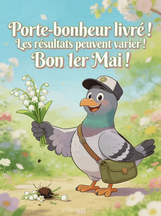 Envoyez une image 1er mai humour pour souhaiter un joyeux muguet avec légÚreté et bonne humeur. Pour varier les plaisirs, découvrez aussi une carte animée 1er mai humour, une image du 1er mai ou une carte message muguet 1er mai.