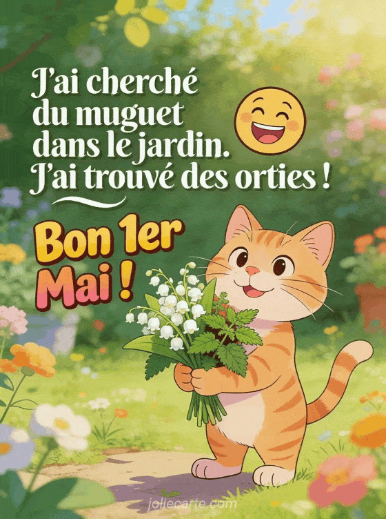 J'ai cherché du muguet dans le jardin. J'ai trouvé des orties ! Bon 1er Mai ! une image humoristique pour célébrer le 1er mai en riant