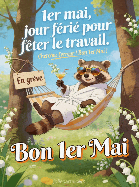 1er mai, jour fĂ©riĂ© pour fĂȘter le travail. Cherchez l'erreur ! Bon 1er Mai ! une image de muguet humoristique pour le 1er mai