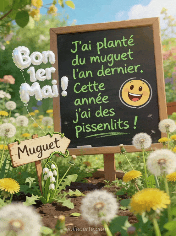 J'ai planté du muguet l'an dernier. Cette année j'ai des pissenlits ! Bon 1er Mai ! une image de muguet humour pour rire le 1er mai