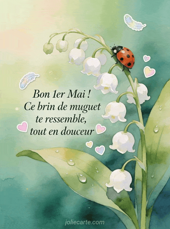 Bon 1er Mai ! Ce brin de muguet te ressemble, tout en douceur des voeux de muguet pour le 1er mai