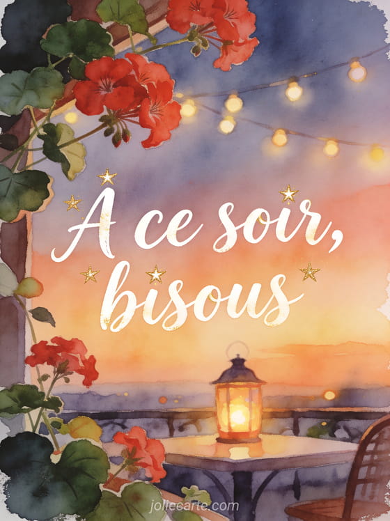 A ce soir bisous garde le lien ouvert avec une promesse simple et affectueuse. Cette carte peut précéder un gif de bisous pour demain, rejoindre une image de bisous à garder et répondre à un au revoir spontané jusqu'à demain.