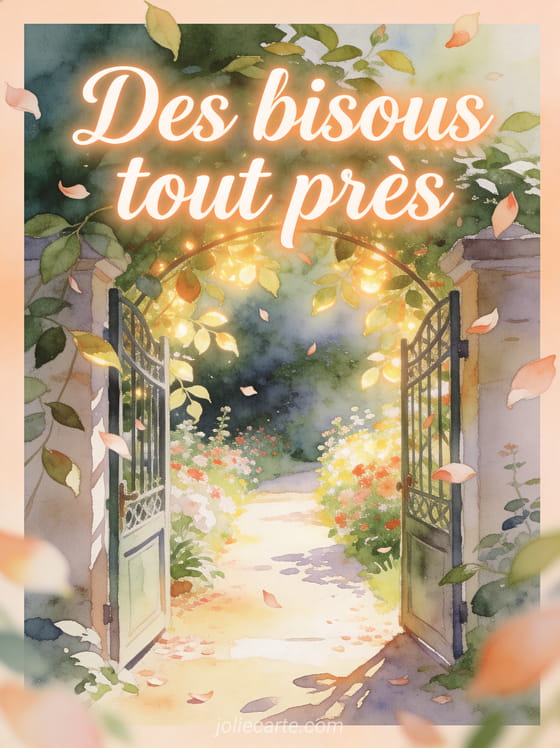 A porte de bisous convient quand vous voulez faire sentir une présence proche, tendre et immédiatement réconfortante. Pour enrichir cette intention, ajoutez des bisous animés, des bisous version animaux ou un gorille qui fait des bisous à votre message.