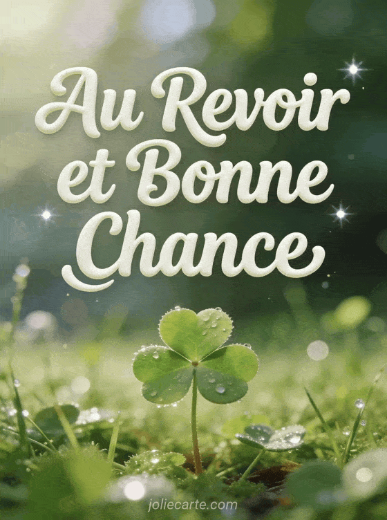 Rien de tel qu'un trèfle à quatre feuilles pour souhaiter bonne chance lors d'un au revoir ! Cette image naturelle capture la magie de ce symbole de fortune, scintillant de rosée matinale dans une prairie. Un message d'espoir et d'encouragement pour tous les nouveaux départs. Découvrez aussi notre carte bonjour mars, ou une carte pour novembre. Pour un collègue, notre carte spéciale sera touchante.