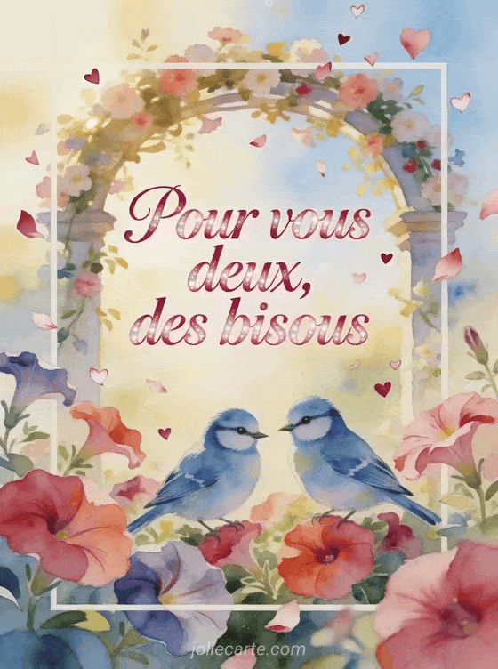 Bisous a vous deux est parfait pour adresser une attention tendre a un couple, a deux proches ou a un joli duo. Pour affiner le ton, regarde aussi des bisous pour une femme et un homme, des bisous tendres en version animee ou de gros bisous de chat en gif.