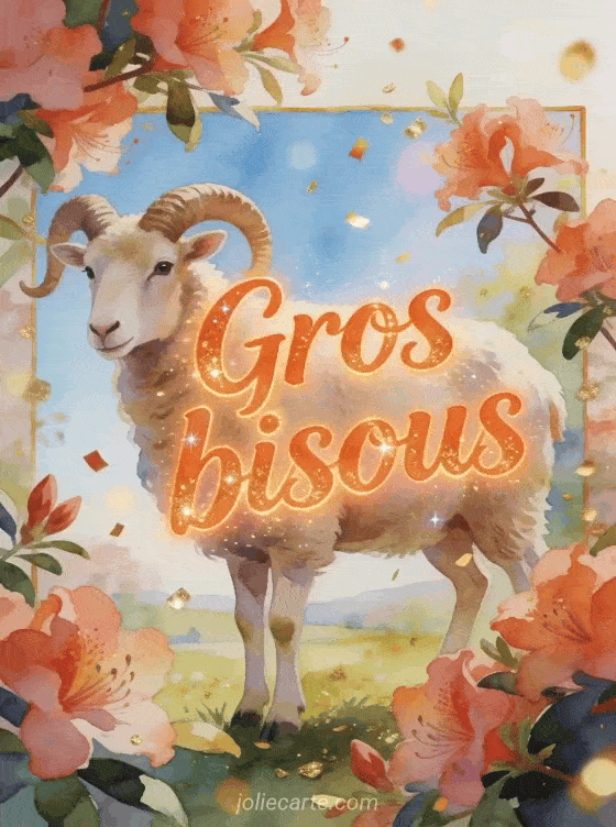 Bisous belier gif est une idee originale pour envoyer un message affectueux avec caractere, surtout si tu veux le relier a des bisous de toutes les couleurs, a des gifs bisous fleuris ou a une image de bisous parfumes afin de garder une phrase naturelle et expressive.