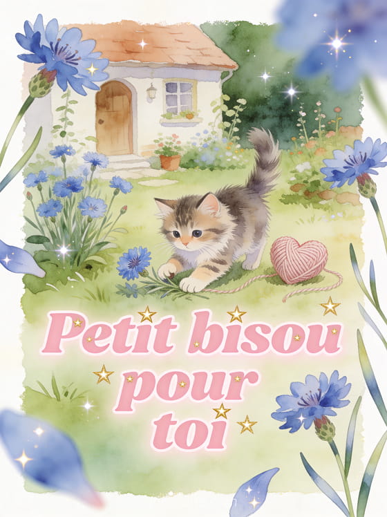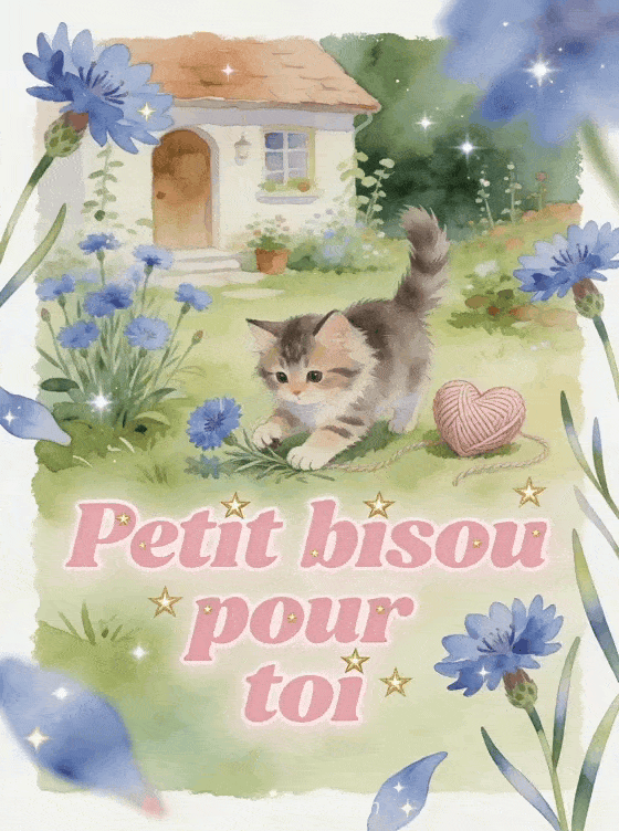 Ce bisous chaton gif convient pour envoyer un petit geste tendre, entre une pluie de bisous en image, un gif bisous tout doux et une image pour envoyer ton affection. Il dit petit bisou pour toi avec simplicité, douceur et spontanéité.