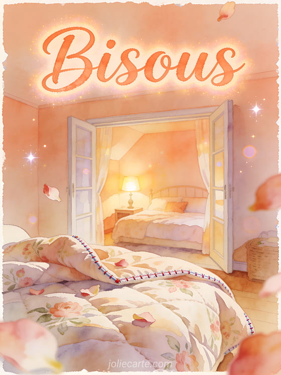 Bisous couette gif est idéal pour faire passer un message tendre dans une ambiance de réconfort. Cette carte peut aussi se relier à des bisous version grand froid, une attention adressée à quatre personnes ou des bisous animés pour un bébé quand vous voulez ajuster la destination.