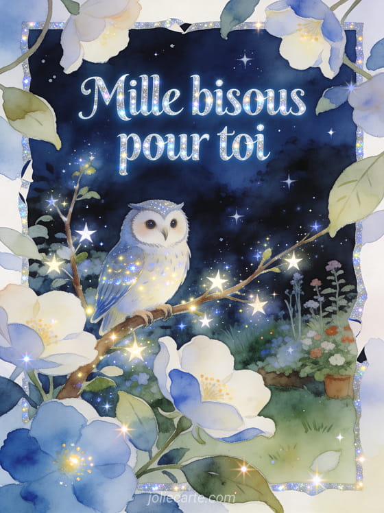 Pour un bisous de chouette, cette carte apporte une note douce et originale a ton message. Elle peut rejoindre une image pour la journee du bisou, rappeler un poeme autour des bisous et prolonger un largage de bisous plein d'elan selon l'humeur.