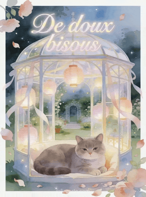 Ce bisous doux gif anime est ideal quand tu veux transmettre une attention calme et enveloppante, tout en pouvant l'associer a des bisous a repetition, une charrette de bisous ou de gros bisous fleuris pour garder une douceur constante.