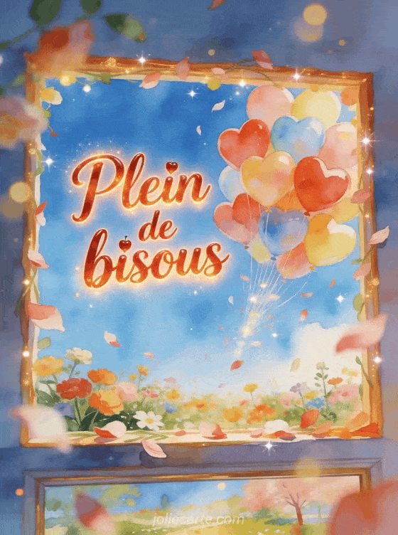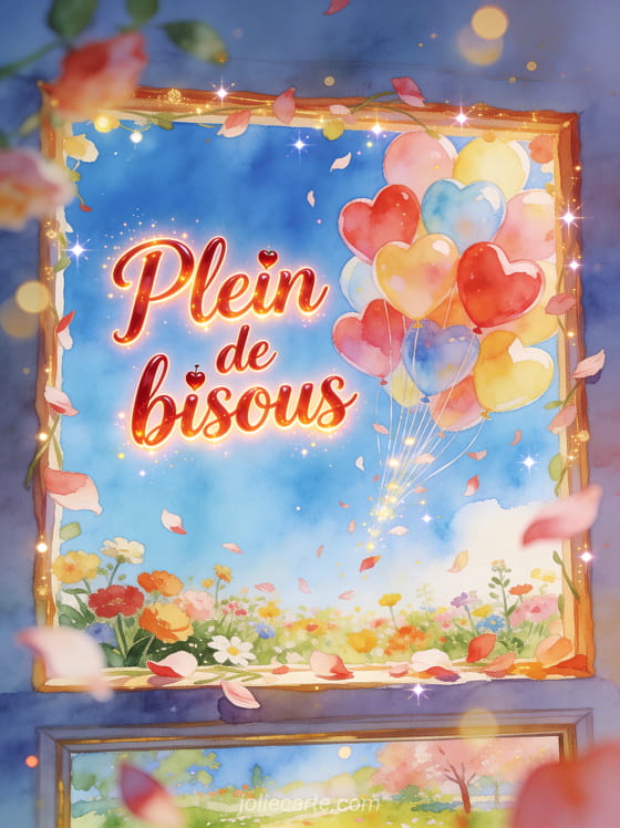 Bisous envolee de coeur convient parfaitement pour envoyer une affection legere, enthousiaste et tres chaleureuse a distance. Pour garder cet elan, retrouve aussi des bisous du soir en version animee, une maniere simple d'envoyer des baisers ou de gros bisous scintillants a partager.