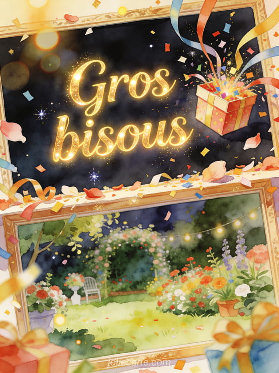 Bisous festif est ideal pour transmettre une affection pleine de bonne humeur, parfaite pour une celebration ou un moment heureux. Pour prolonger cet elan, regarde aussi des bisous volants en forme de coeur, une image pensee pour offrir des bisous ou des baisers a envoyer en version virtuelle.