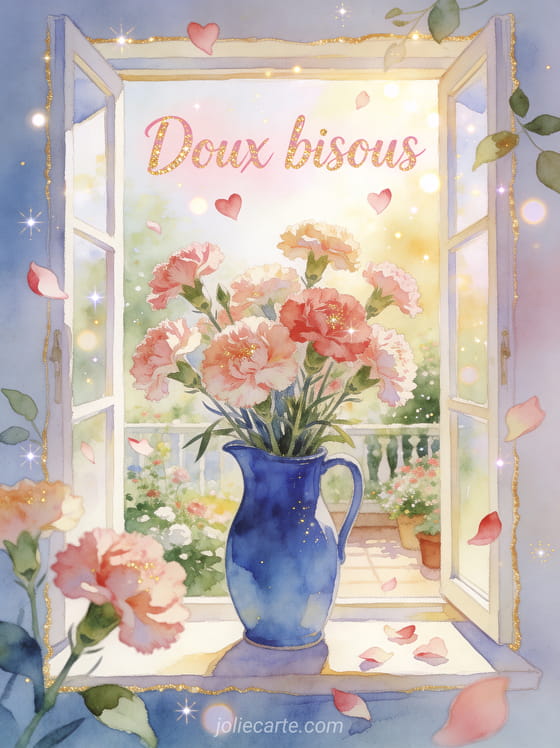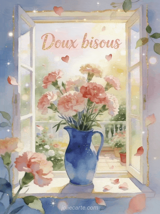 Bisous fleur gif apporte une nuance tendre et elegante a ton message, surtout si tu aimes des bisous doux et tendres, de gros bisous pour tout a l'heure et une pensee venue de Provence pour garder une attention naturelle, affectueuse et toujours facile a offrir.