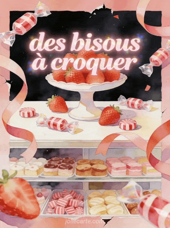 Bisous fraise bonbon convient à un message tendre et gourmand, avec de gros bisous envoyés à plusieurs, des bisous givrés et une touche de bisous version koala pour garder une attention joyeuse, légÚre et facile à partager.