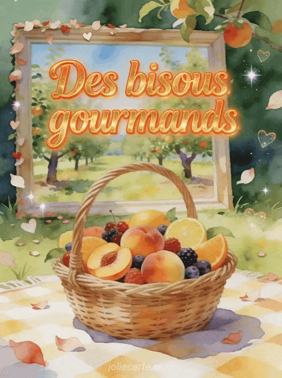 Cette carte gratuite autour de bisous fruités peut aussi accompagner des gifs de bisous neigeux, faire écho à des bisous façon panthÚre et prolonger votre message avec un gif de bisous licorne, afin de donner à votre attention une touche légÚre, joyeuse et originale.