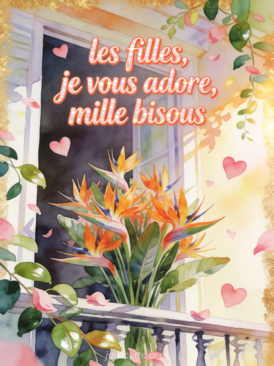 Carte bisous les filles je vous adore