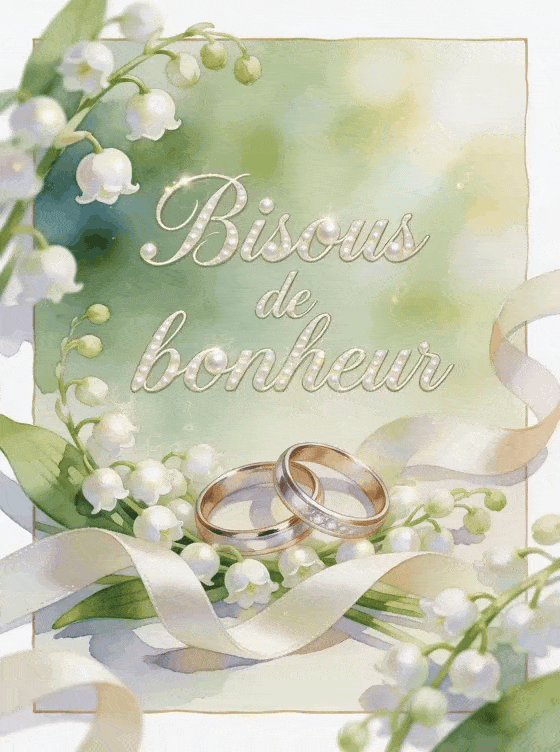 Bisous mariage convient a une attention tendre et elegante, quand on veut saluer un couple avec des mots doux sans perdre la sobriete du moment, surtout si vous y glissez un petit muak plein d'affection, des bisous facon raton laveur et une attention remplie de bisous animaux pour varier les nuances.