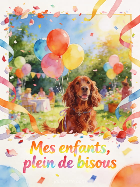 Avec bisous mes enfants, cette carte permet d'envoyer une affection familiale simple et chaleureuse. Elle peut s'associer a un bisou anime avec une coccinelle, renforcer des bisous aux couleurs du soleil et prolonger un message pour dire je t'envoie des bisous dans le meme elan.