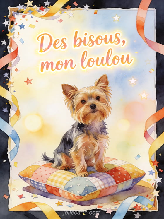 Avec bisous mon loulou, le message devient plus complice et plus tendre, ideal pour rappeler votre attachement en quelques mots, surtout si vous lui associez une pluie de bisous, des baisers au ton malicieux et une dose de tendresse au chocolat afin de garder une vraie chaleur dans la formule.