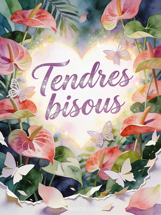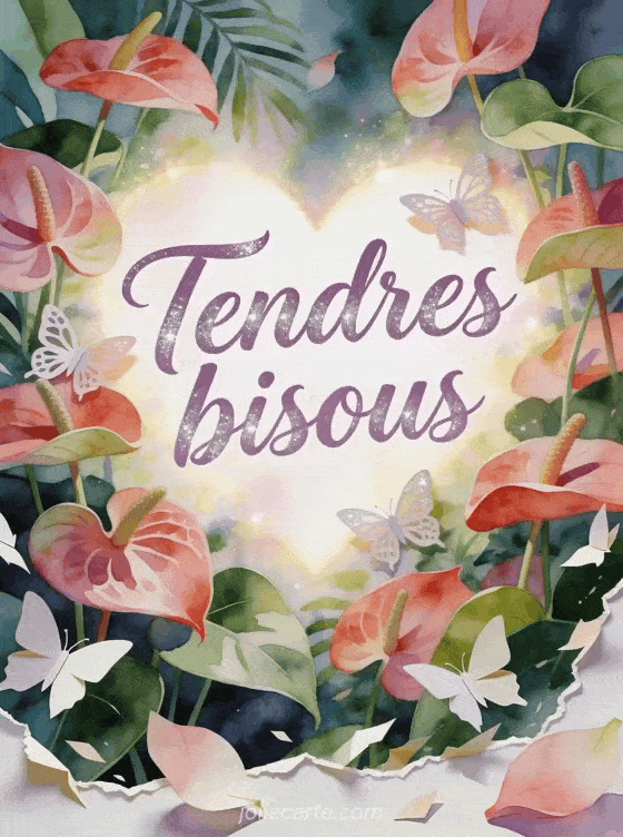 Un bisous papillon gif convient pour envoyer une marque d'affection lĂ©gĂšre, Ă mi-chemin entre de gros bisous Ă envoyer, un bisou vraiment chouette et des bisous de NoĂ«l quand l'occasion s'y prĂȘte. Cette carte garde un ton doux, spontanĂ© et facile Ă partager.