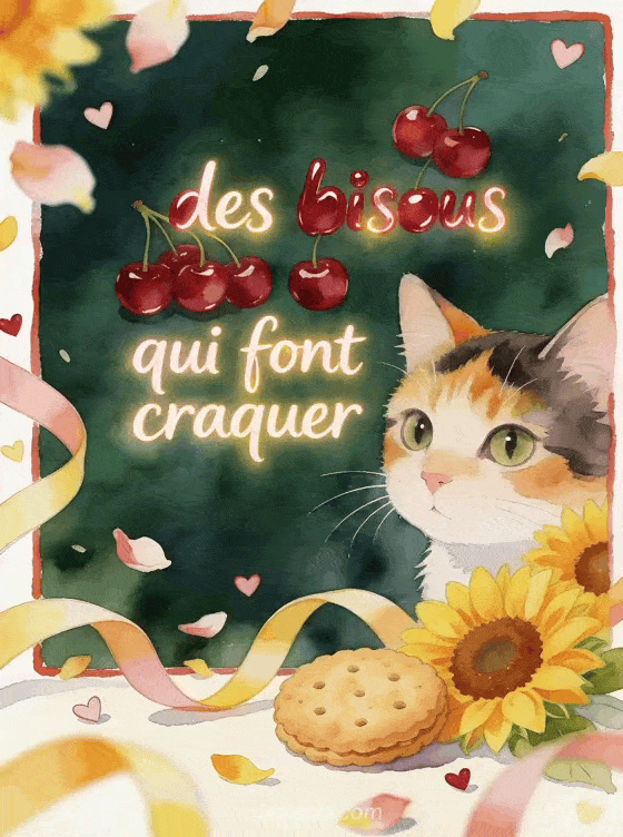 Bisous tout doux gif animé · Gros bisous chaton · Gif brouette de bisous · Bisous chocolatés gif · Poutou bisous
