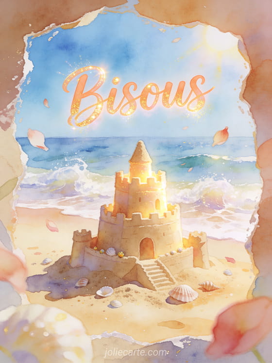 Bisous sur le sable apporte une douceur légÚre et estivale à vos messages, idéale pour partager une affection simple. Pour compléter cette ambiance, ajoutez une carte de gros bisous, de gros bisous pour vous ou un souffle de bisous à votre envoi du jour.