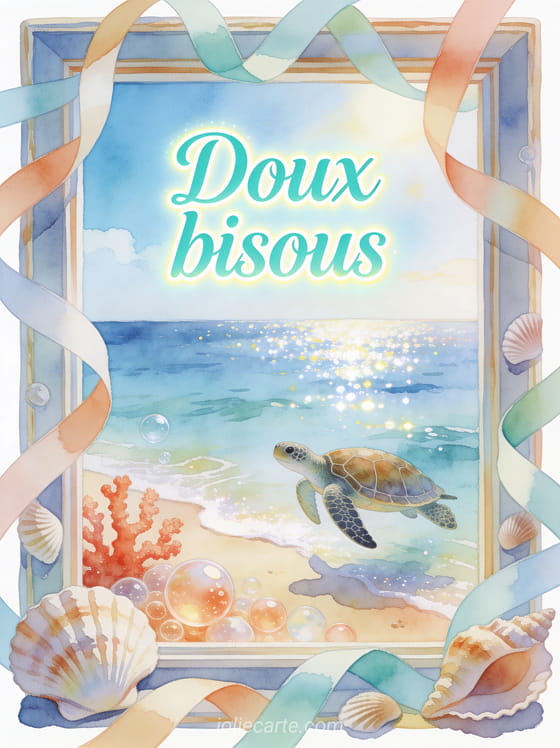 Pour choisir un gif bisous tortue à partager, cette carte gratuite fait le lien entre une envolée de bisous légÚre, une vraie douceur en bisous et une image remplie de bisous, afin d'envoyer un message apaisant qui reste tendre, original et facile à transmettre.