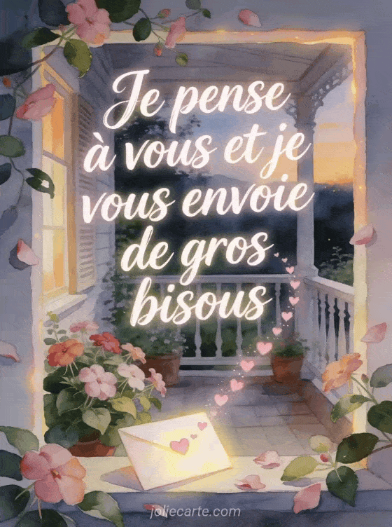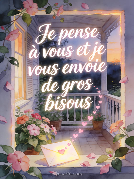 Je pense Ă vous et je vous envoie de gros bisous une formule attentionnee pour adresser des bisous et une pensee