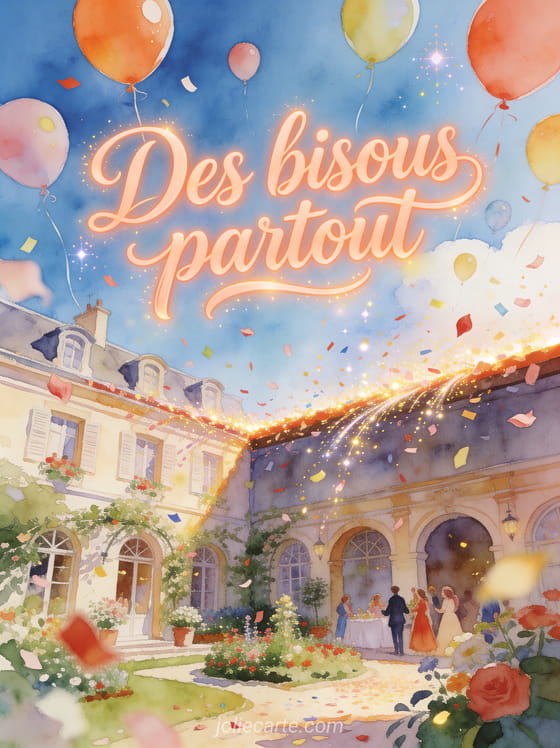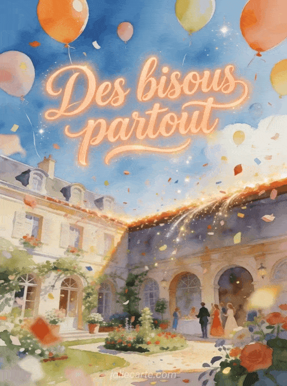 Cette carte gratuite autour de bisous partout peut aussi accompagner des bisous parfum lavande, faire Ă©cho Ă des gifs animĂ©s dâĂ©normes bisous et prolonger votre message avec des bisous fleuris, afin de diffuser une attention joyeuse et facile Ă partager en toute occasion.