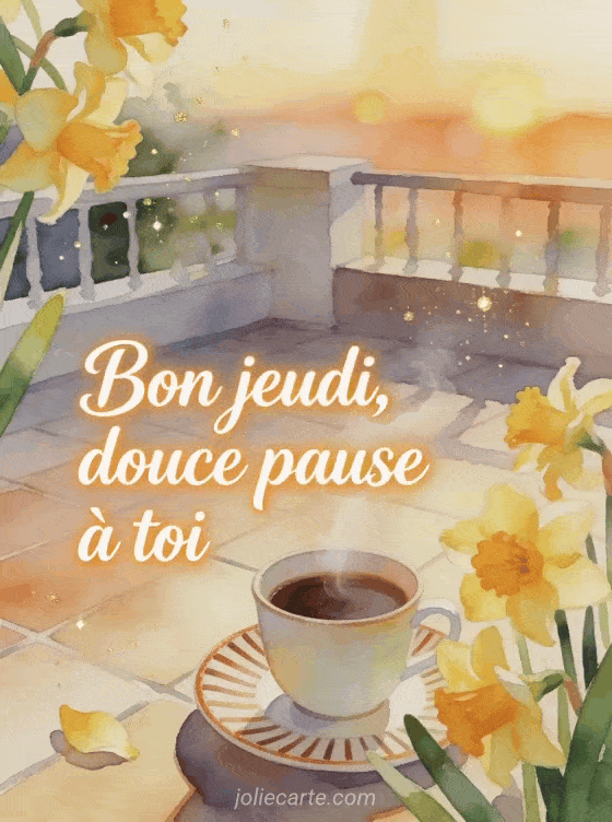 Bon jeudi café gif accompagne parfaitement une pause attentionnée dans la journée. Il peut transmettre des bisous animés du jeudi, ajouter une touche scintillante et garder un gif tendre avec bisous pour un message plus affectueux.