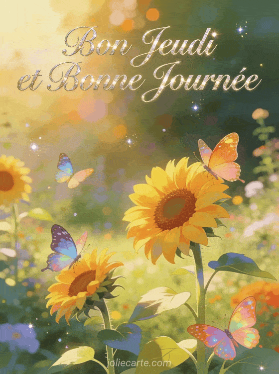 Bon Jeudi et Bonne Journée des papillons et tournesols pour une journée radieuse