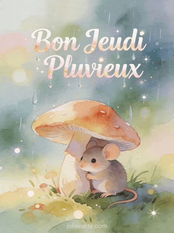 Envoyez ce Bon Jeudi Pluvieux pour apporter de la douceur mĂȘme sous la pluie. Une souris adorable qui se protĂšge des gouttes. DĂ©couvrez aussi un jeudi sourire humour, un jeudi positif ou un jeudi sous la pluie.