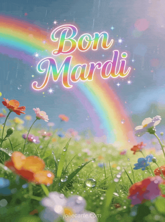 Ce double arc-en-ciel spectaculaire enjambant une prairie fleurie aprĂšs la pluie symbolise l'espoir et la joie de ce nouveau mardi. Les couleurs vives contrastant avec le vert frais de l'herbe et les gouttelettes d'eau crĂ©ent un tableau naturel Ă©poustouflant. Partagez cette merveille avec vos proches pour une bĂ©nĂ©diction colorĂ©e pleine de promesses et de renouveau. Ce phĂ©nomĂšne magique rappelle que mĂȘme aprĂšs la pluie vient le beau temps parfait pour ce milieu de semaine. Envoyez aussi une pensĂ©e fleurie pour accompagner ce message d'optimisme.