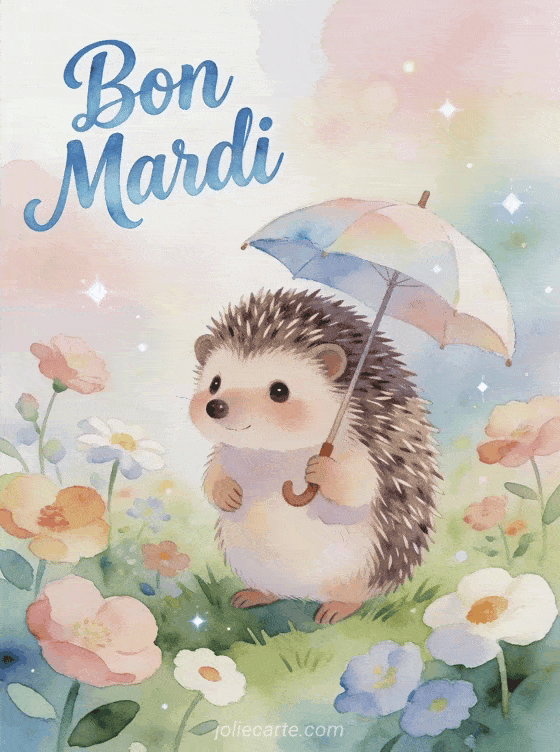 Ce petit hĂ©risson charmant dessinĂ© Ă l'aquarelle avec son parapluie dans un jardin fleuri apporte une touche artistique Ă ce mardi. Les teintes pastel et le style illustration crĂ©ent une atmosphĂšre douce et poĂ©tique parfaite pour les Ăąmes crĂ©atives. Envoyez cette Ćuvre d'art Ă vos proches pour une journĂ©e fleurie pleine d'inspiration et de beautĂ©. Le charme naĂŻf de ce dessin rappelle la magie des livres d'enfants et invite Ă garder son Ăąme d'enfant. Ajoutez une pensĂ©e lumineuse pour complĂ©ter cette attention artistique et originale.