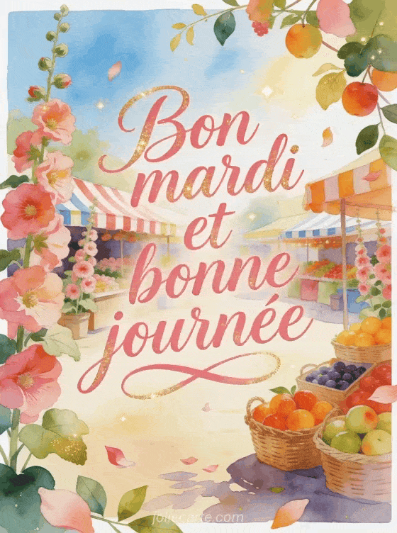 Un bon mardi en image animée donne plus de présence à votre souhait, qu'il prenne la forme d'un message vivant pour mardi, d'un bonjour suivi d'une belle journée ou d'une salutation matinale trÚs simple.