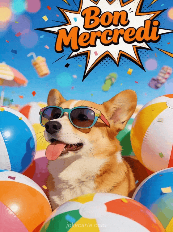 Partagez cette image « Bon Mercredi » avec un corgi hilare portant des lunettes de soleil pour déclencher les rires. Continuez avec un mercredi entre amis, un bonjour sympa ou un mercredi avec des chats.
