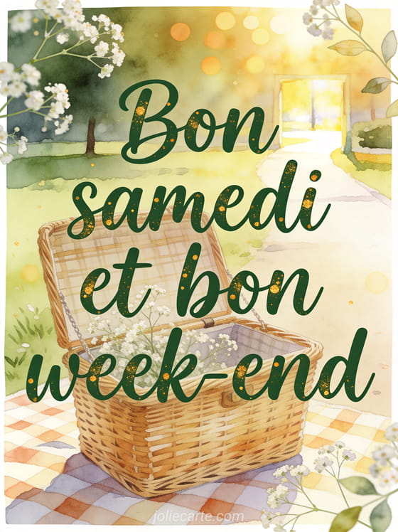 Bon samedi et bon weekend images aide à souhaiter une pause agréable avant de profiter pleinement du repos. Ce message rejoint un souhait qui lance le week-end, s'envoie comme un message pour tout le monde et commence parfois par une attention dÚs le petit déjeuner.