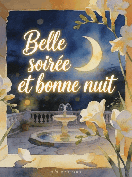 Une bon soirée carte de bonne nuit accompagne la fin de journée avec un message simple et réconfortant. Elle peut suivre une carte animée pour dire bonne nuit, rester proche d'un souhait de nuit tout simple ou devenir un mot tendre pour elle avant le sommeil.
