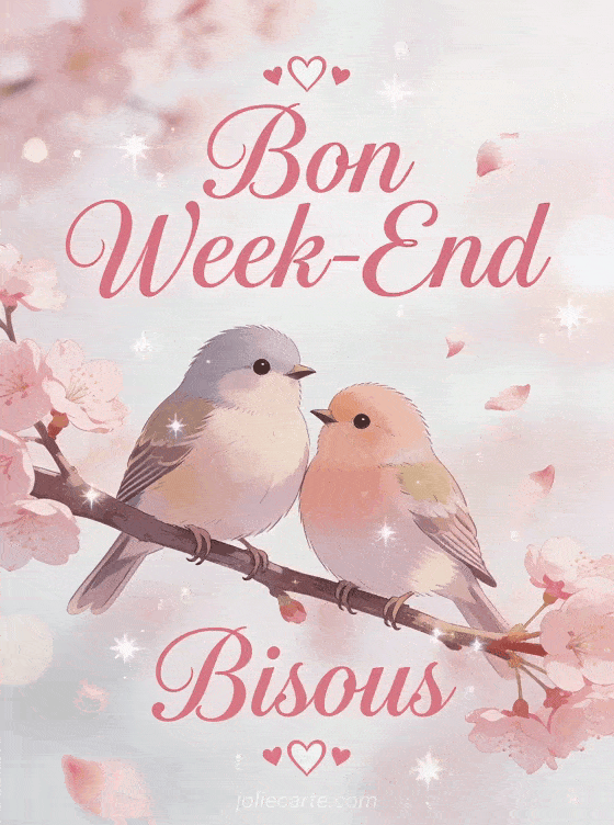 Partagez de la tendresse avec cette image Bon Week-End Bisous et ses oiseaux sur une branche de cerisier. Decouvrez aussi un week-end positif, une image drole ou un message romantique.