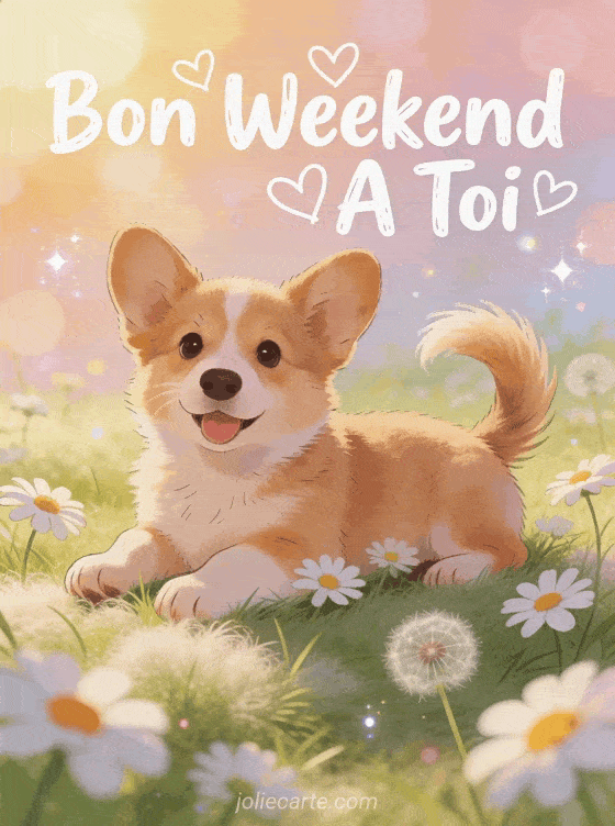 Bon Weekend A Toi une image adorable avec un corgi joyeux