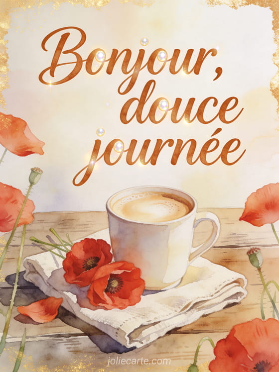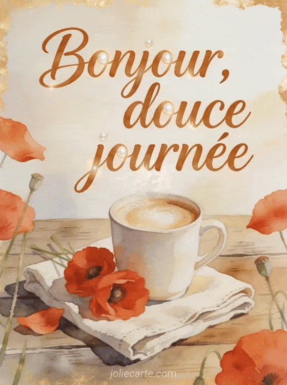 Bonjour avec le café gif animé apporte une salutation vivante aux premiers moments de la journée. Cette carte peut porter une citation café sur l'amitié, envoyer un bisou café pour dire bonjour et rejoindre un bonjour café en gif simple à partager.