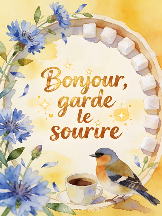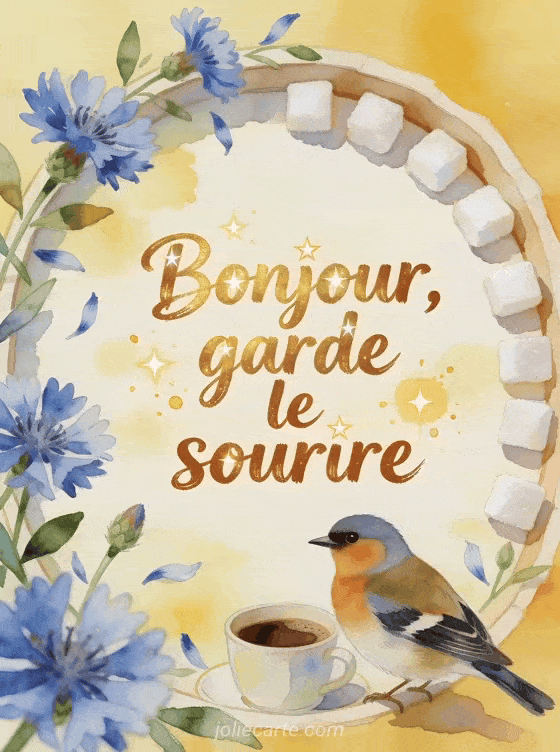 Bonjour cafe sourire envoie une énergie positive dès le matin, sans long discours. Cette carte prolonge un bonjour café de janvier, répond à un bonjour même sans café et anime des gifs café pour sourire.