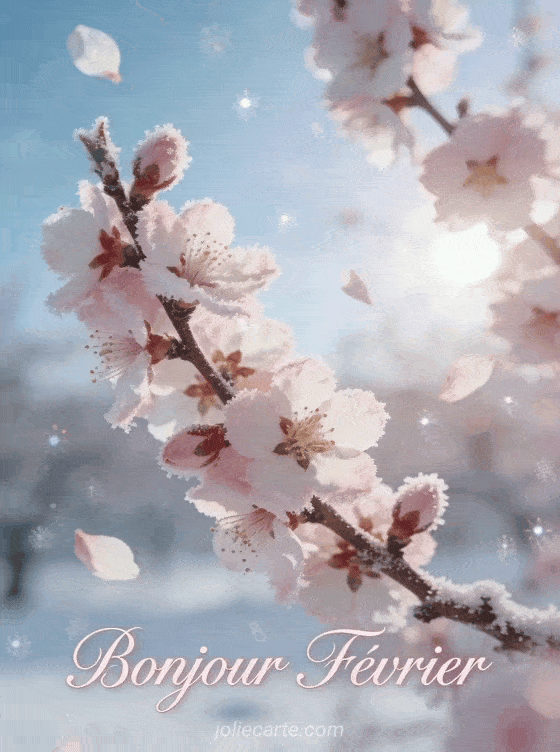 Célébrez l'arrivée de février avec ce « Bonjour Février » et ses fleurs d'amandier sur fond de ciel d'hiver. Variez avec un bonjour tendre, un bonjour mignon ou un bonjour relaxant.