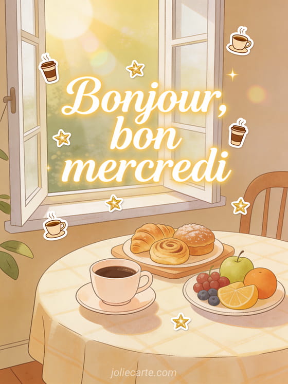 Un bonjour mercredi image aide à envoyer un mot chaleureux dès le matin et à garder une attention régulière toute la semaine. Pour d'autres idées, parcourez bon mercredi images gratuites, bonjour bon mercredi café et carte bon mercredi.