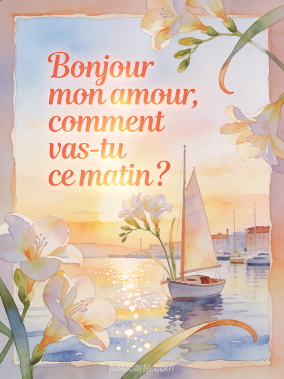 Pour un bonjour mon amour comment vas tu ce matin, ce message ouvre la journée avec douceur : un petit ça va bien, merci, et toi prolonge la tendresse, quelques nouvelles du jour invite à parler, et une carte pour prendre des nouvelles garde le lien vivant dÚs le réveil.