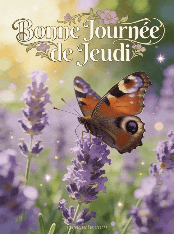 Envoyez cette Bonne Journée de Jeudi pour partager beauté et délicatesse. Un papillon coloré dans un jardin provençal. Variez avec un jeudi sourire, un jeudi gif ou un jeudi humour.