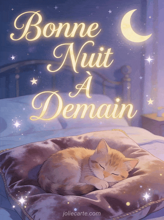 Partagez cette image « Bonne Nuit à Demain » pour souhaiter une nuit paisible à vos proches. Un adorable chaton endormi sous les étoiles transmet toute la tendresse de votre message. Pour varier les plaisirs, découvrez un à demain chaleureux, une carte de retrouvailles ou explorez notre collection complÚte de messages du soir.