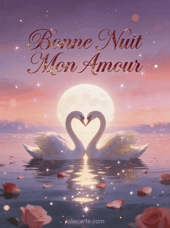 DĂ©clarez votre amour une derniĂšre fois avant la nuit avec cette image romantique oĂč deux cygnes gracieux forment un coeur sur un lac baignĂ© de clair de lune. Les pĂ©tales de roses flottant sur l'eau et les reflets des Ă©toiles crĂ©ent une scĂšne digne des plus belles romances. Envoyez ce message Ă votre amour pour qu'il s'endorme en sachant combien il compte pour vous. Ceux qui aiment les paysages nocturnes apprĂ©cieront aussi une nature paysage bonne soirĂ©e et bonne nuit tout aussi belle. Le ciel rose et violet du crĂ©puscule enveloppe cette scĂšne d'une magie qui ne laisse personne indiffĂ©rent. Accompagnez ce message d'une animĂ© bonne soirĂ©e et bonne nuit pour doubler les attentions. Ces cygnes symbolisent l'amour fidĂšle et Ă©ternel qui unit deux Ăąmes mĂȘme pendant le sommeil. Variez les plaisirs avec un sms pour souhaiter bonne nuit a son cheri personnalisĂ©.