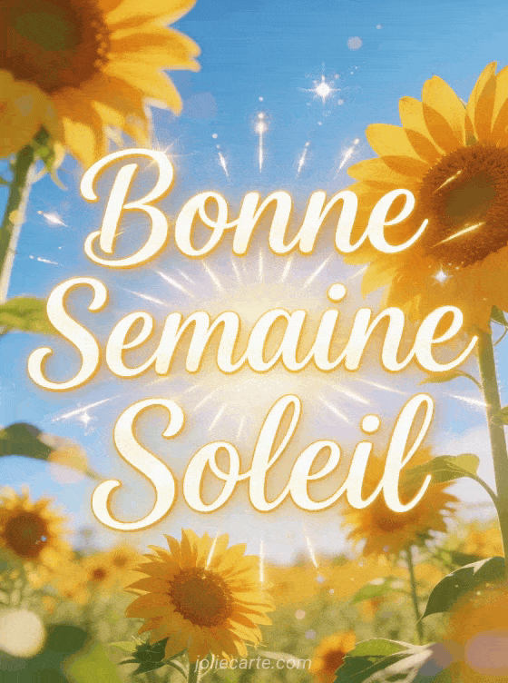 Cette image ensoleillée illumine vos voeux de bonne semaine. Essayez aussi un texte poetique, une carte orchidee ou ce champ de soleil.